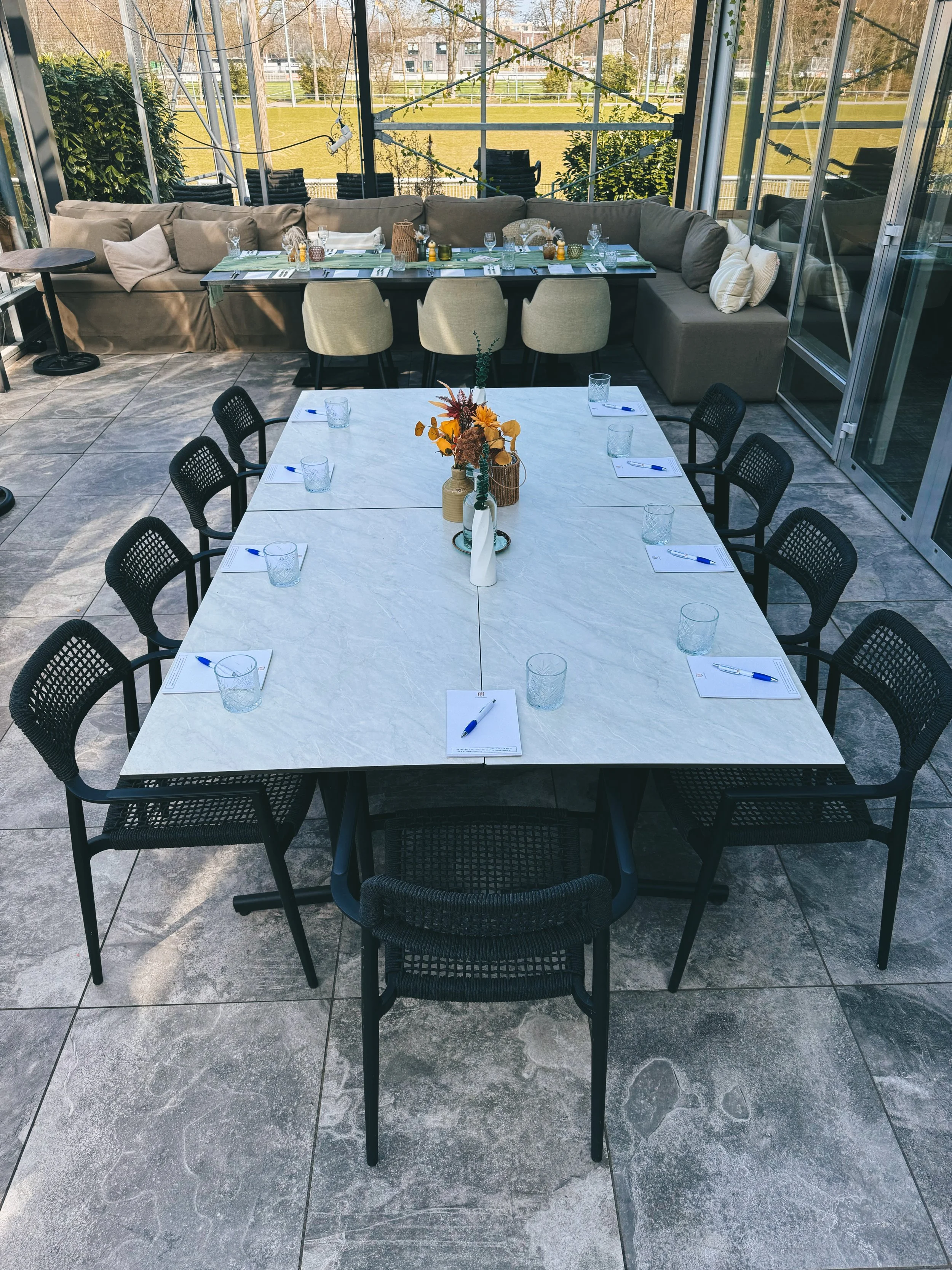 Bij mooi weer nodigt ons ruime terras uit om uw feest in de buitenlucht te vieren, met een prachtig uitzicht op het groene landschap. Binnen creëren we een sfeervolle en flexibele opstelling die volledig afgestemd is op uw wensen, zodat u en uw gasten zich direct thuis voelen.